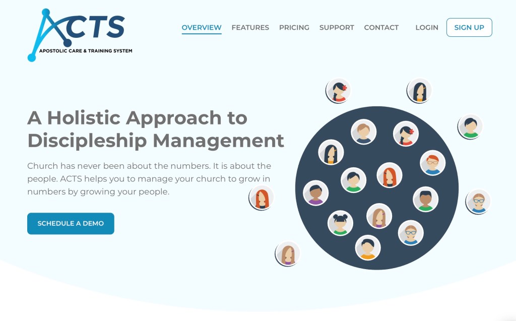 The system is called Apostolic Care & Training System or ACTS for short. It is the creation of Tabernacle of Joy, an Apostolic Pentecostal church in Singapore led by Pastor Timothy Lee. The idea of this system is to help facilitate making disciples, whether that is through tracking guests, Bible studies, small groups or discipleship training. This focus is what truly sets ACTS apart from other church management systems.